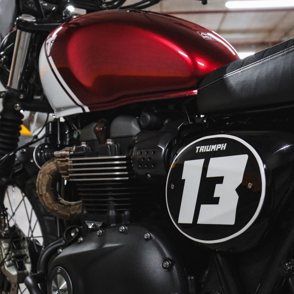 A base dessa customização é uma Triumph Scrambler moderna, o charme retrô está ali: linhas simples, postura alta, presença mecânica evidente. Ao mesmo tempo, é uma moto pensada para o dia a dia, com performance equilibrada e comportamento previsível.