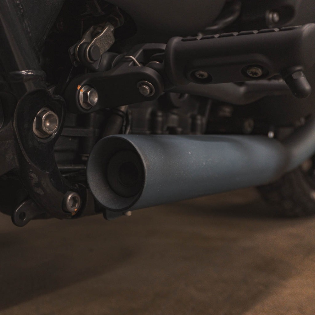 As intervenções não se limitam ao visual. O guidão redesenhado altera a leitura da moto e melhora a posição de pilotagem. Os paralamas dianteiro e traseiro acompanham o novo desenho, deixando o conjunto mais limpo e coeso.